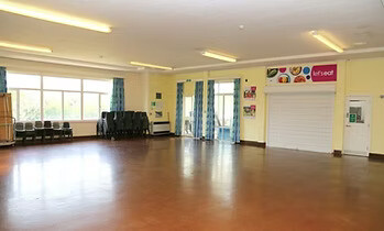 The Large Hall: is approximately 11m x 15.2m. The Large Hall houses a piano, P.A system, dekstop, projector and a 3 metre x 2 metre automated drop down cinema screen. Up to 100 chairs, 15 long tables and 4 round tables (seating 8 people on stools) are available for use within the hire costs. In addition “The Kitchen Room” can be hired if you would like to cater for refreshments with your hall hire (see ‘The Kitchen Room’ link). Toilet facilities are also included in Hall hire.